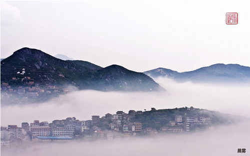 说明:照片拍摄于春夏之交的石塘早晨。作者在清晨5点半来到了石塘海边,选择海港对面的海湾房子为拍摄对象,选用了长焦200mm,对被摄风景进行测光,并调整了光圈值F9,1/800秒进行拍摄。海风在早晨大地的暖意下容易产生云雾景色,使得云中之城若隐若现,给人以海市蜃楼的缥缈感觉。