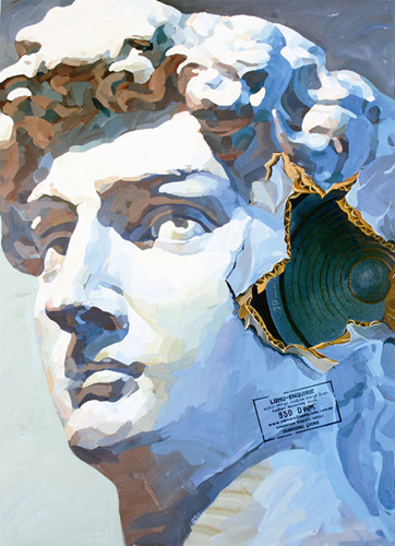 说明:大卫是石膏像中公认难度最大的,作者从这个被所有学习绘画的学生习惯的头像出发,去想象,发觉不同的面,让熟悉的事物陌生化。同时结合设计实验,打破了石膏头像的完整性,同产品效果图结合,让作品拥有封面包装的感觉,在体现设计感的同时,又不失绘画性。