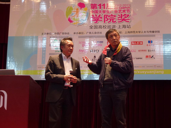 2013年3月18日下午13:30,第十一届学院奖全国高校巡讲在上海师范大学热烈召开 。中国大学生广告艺术节是目前国内唯一由国家工商总局批准、中国广告协会主办大型的大学生广告艺术活动。其核心项目为“学院奖”,该奖项已历10届、13年,在全国各高校中深入人心,且影响力已经从高校延伸到广告行业,成为高校学子展示自身风采,行业单位遴选人才,企业获取杰出创意的重要途径。