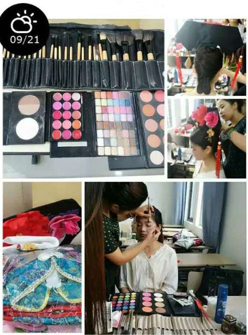 9月22日,艺术系13级人物形象专业学生,在朱国平、莫夏瑾、孙均海三位老师的带领下,来到位于松江大学城的精英教育参加高级化妆师资格证书的考试。