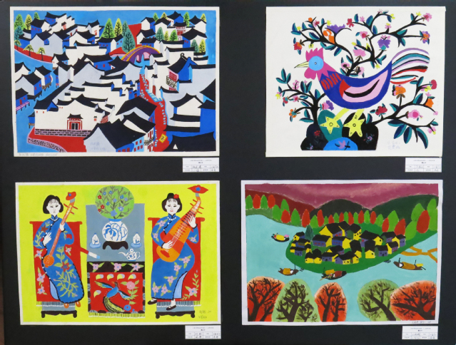 本次展览有我系金山民间艺术传承大师工作室主持朱希教授所指导的金山农民画,其色彩鲜艳、补色关系明朗、画面构成具有强烈的江南地域风情,可谓把金山民间艺术之美表现到了极致。