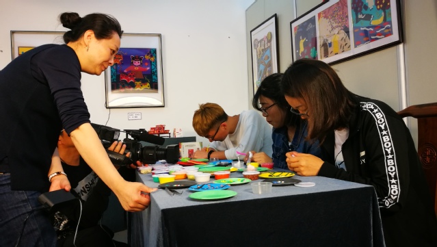 五月初,应用艺术系格外忙碌地为第五届全国大学生艺术展演进行最后的展台布置、表演彩排及录制视频工作。应用艺术系主任侯雨豪老师、金山农民画院院长朱希老师、艺术系分团委书记莫夏瑾老师及学生干部们共同合力布置非遗农民画艺术工作坊实景展台。为传承和发扬中国传统文化非遗农民画,艺术系师生群策群力,创造出以农民画为元素的3d动画展品、软陶作品、设计作品、绘画作品、布艺作品及各类衍生品。中侨学院执行董事严红娟女士及财务处处长周仁凤老师在自身忙碌紧凑的工作之余,特意深夜实地走访并提出宝贵指导意见。