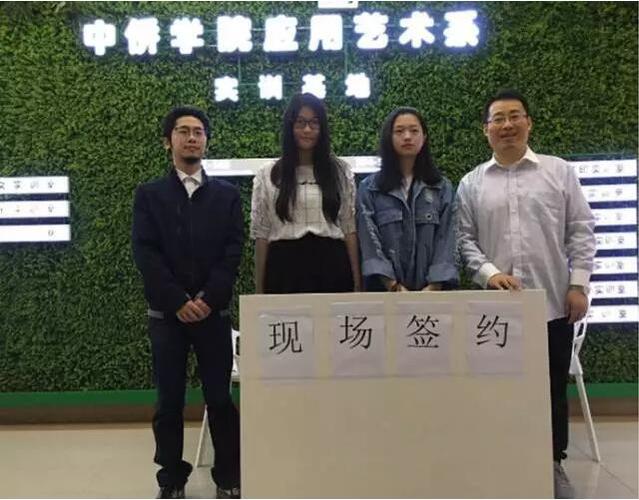同学们顺利完成毕业答辩,于此同时还与上海曦山网络科技有限公司进行了就业签约仪式,14数媒毕业生卢佳池和陈梦蝶同学在上海曦山网络科技有限公司实习半年,表现优秀并获得该公司认可,获得了宝贵的就业机会!