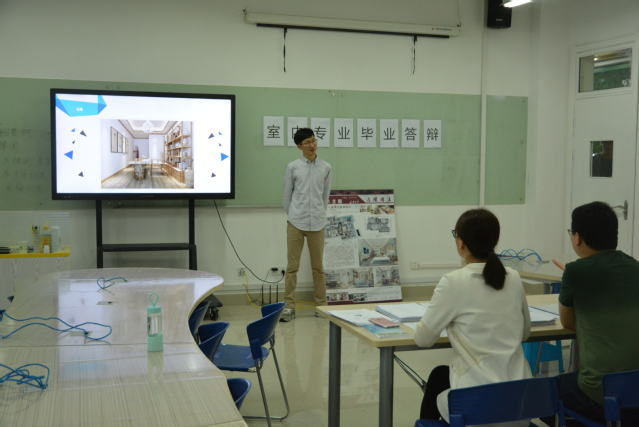 下午12:30室内艺术设计专业优秀毕业作品答辩在5号楼504举行。4名专业教师及校企合作专家---上海室装集团陈念先生作为答辩评委。同学们对自己的毕业设计从方案到施工图的绘制、模型的制作等都进行了详细的讲解。答辩评委对每位同学的毕业设计进行了精彩点评并给与了一些建议,这对同学们的成长是有很大益处的。最后我们的同学与评委们合影,留住这精彩的时刻。