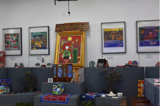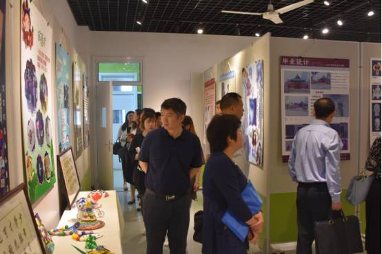 紧接着到了四楼,金山民间艺术研究所中展出了优秀的书法作品和特色农民画,这些优秀的作品均来自我们少儿艺术的同学们。旁边的展厅中陈列了室内设计专业的同学在实习期间结合工作实践所作的市场楼盘的模型。在压花实训室中,同学们都表现出浓厚的兴趣,踊跃参与,学习如何将大自然中的花花草草形成一幅幅生动画作。
