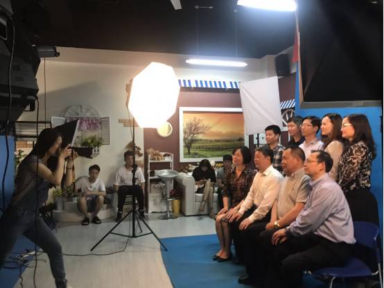 在摄影实训室门口,我们看到了王奕老师正在指导同学们如何摄影,细心认真的态度让领导们停下了脚步,驻足观看,并留下了合影。