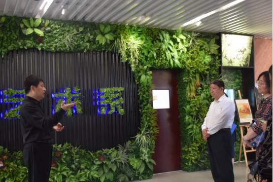 随后侯主任和朱书记陪同蒋永华一行参观了我系实训室,走上三楼,首先映入眼帘是被花草和灯光环绕的“艺术系”三个大字,给人眼前一亮的感觉,走廊的墙面采用了3D立体技术,这也展示出艺术系的青春活力。