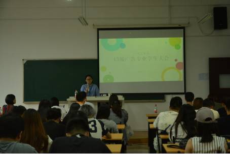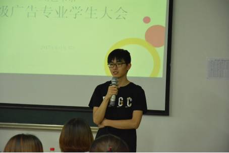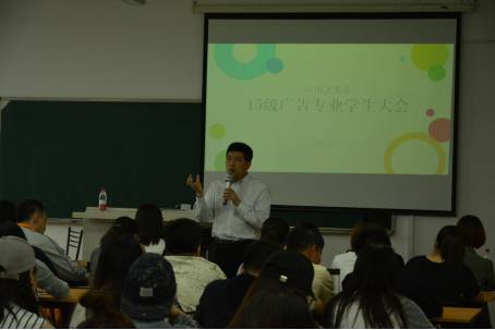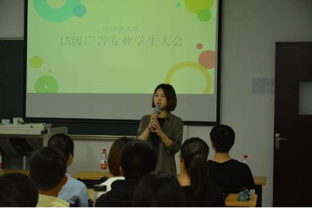 6月5日下午15:45,应用艺术系15级广告专业在5号楼203教室召开全体学生大会。会议邀请了上海众皈实业有限公司董事会长朱凤激女士,上海攀争软件有限公司运营总监何莉女士,红豆月子湾国际母婴护理中心营销部经理顾华慧女士,上海灵刻实业有限公司人事经理孙丹萍以及设计师12级校友钱少峰。应用艺术系主任侯雨豪老师、广告专业全体教师、广告专业全体大二学生参加了本次大会。
