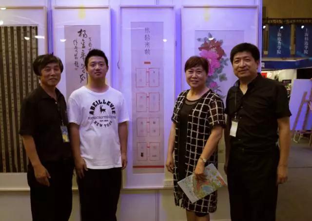 (副校长卓丽环教授、艺术系主任侯雨豪教授、艺术系大师朱希教授、艺术系少儿专业王超同学参加大学生艺术展演优秀书画作品展开幕式)