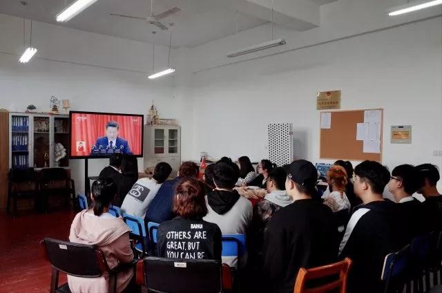 收看直播期间,同学们的自豪感和喜悦之情溢于言表。大家认真盯着播放屏幕,聚精会神地听着来自党中央的声音,直观地体会了共产党领导下的新中国在新时期、新阶段所取得的辉煌成绩