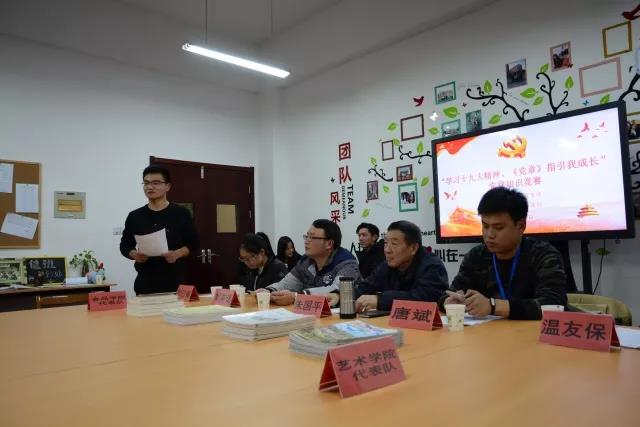 2017年12月19日,艺术学院直属党支部和食品学院直属党支部联合举办的“学习十九大精神、《党章》指引我成长”党章知识竞赛,在五号楼311艺术学院分团委办公室如期举行。