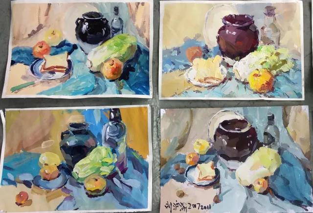 通过这次色彩绘画能力摸底考我发现,学生的色彩绘画能力相较上学期的素描稍有欠缺,因为但凡学习西洋画都是从素描入手,因此素描训练的时间相较色彩要更久一些。我认为教研活动报喜也要报忧,在摸底考的过程中我询问了很多同学,有些学生学画时间一年或半年,而学画仅有一个月甚至更短的也不在少数,这也是色彩相较素描薄弱的重要原因之一。发现问题是好事,在接下来的课程中应该加强学生色彩基础的训练,对于学画时间较短的学生,基础美术教师应该给予更多的鼓励与指导,加强学生的信心和自我认同感!坚持以人为本、分层教学,绝对不放弃任何一名学生!