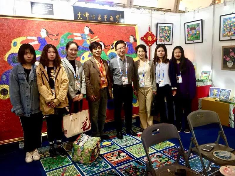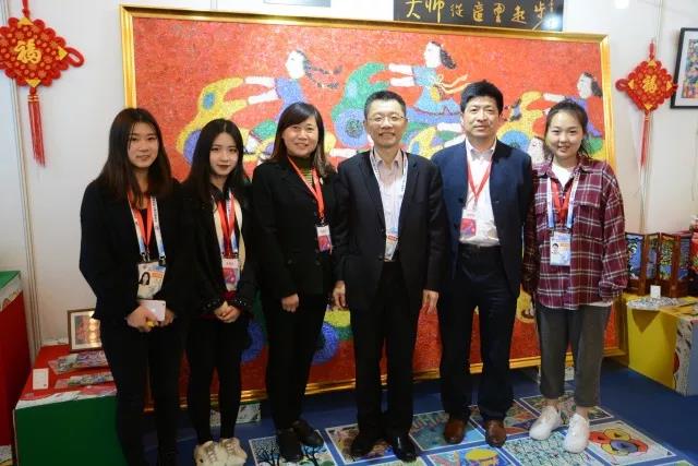 上海市教委主任陆靖也在开幕式当天第一时间前往位于展览中心“非遗金山农民画大学生工作坊”展台,了解相关情况,对“非遗金山农民画大学生工作坊”的工作给予充分肯定,并对“非遗金山农民画大学生工作坊”发展具有上海民间特色、地域特色的原创艺术文化作出的贡献表示了赞誉,对中侨学院“非遗金山农民画”研究课题今后的发展和规划给予关心和指导。陆主任表示,今后会持续关注中侨学院,希望“非遗金山农民画大学生工作坊”能够继续不断创新实践下去,拓展高职院校对中华传统文化艺术的研究领域。