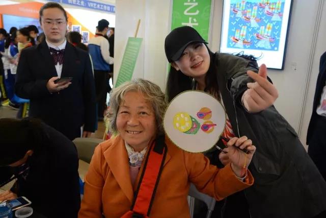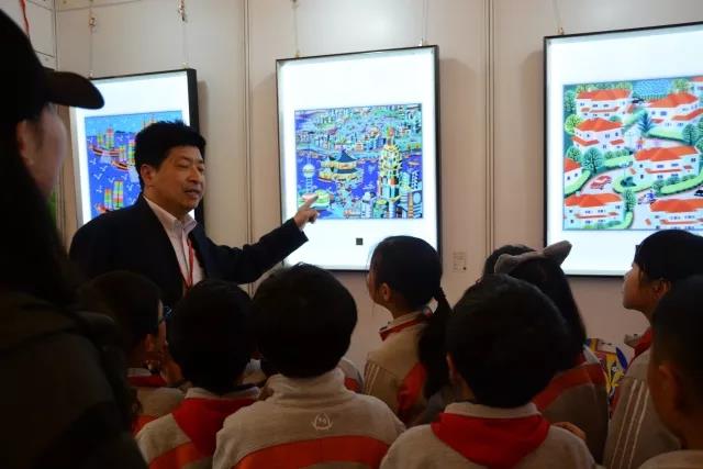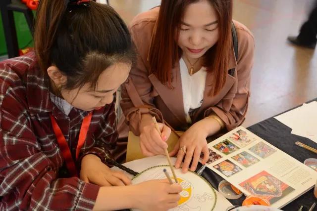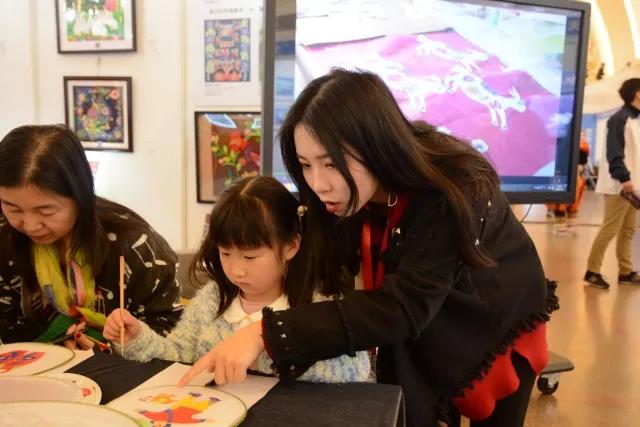 艺术不分年龄、不分界线,此次展会来访的客人有着各个年龄段的学生、家长、老人。艺术学院秉持着“传承与创新”的思想理念,为来访的学生们传授金山农民画。我院领导亲自带领访客们一步步了解“非遗金山农民画大学生工作坊”的具体内容。同时,我院优秀学子也亲手教导学生们绘制金山农民画。