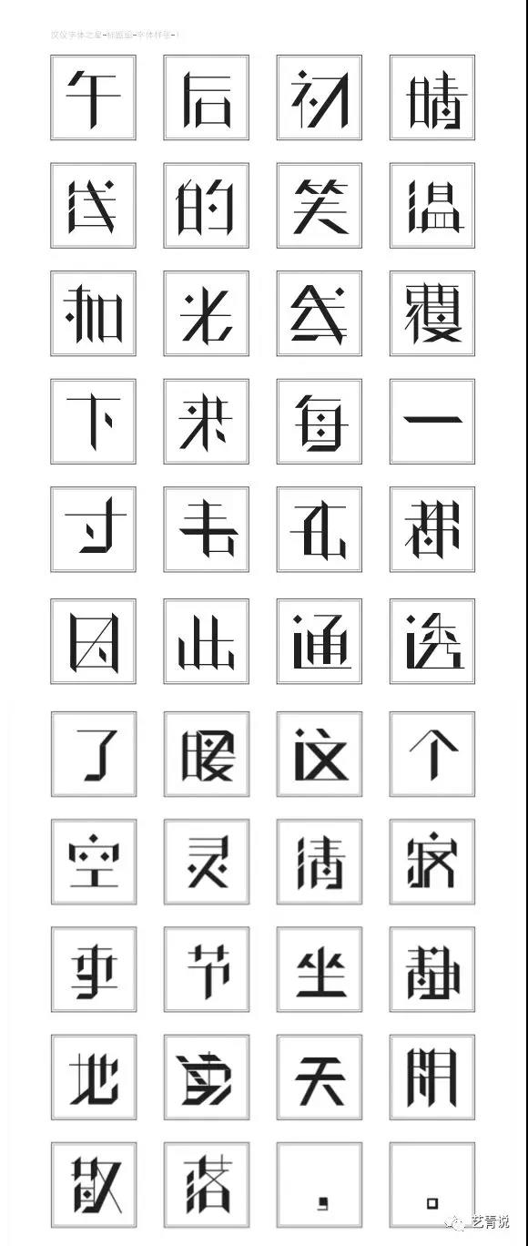 这款字体的名称为卡顿,主要体现在文字的部分比划,给人感觉一种突然停顿又突然开始的视觉感受,和传统汉字不同的是,这款字体没那么严肃,相反让人觉得轻松。