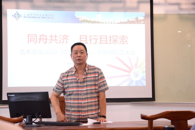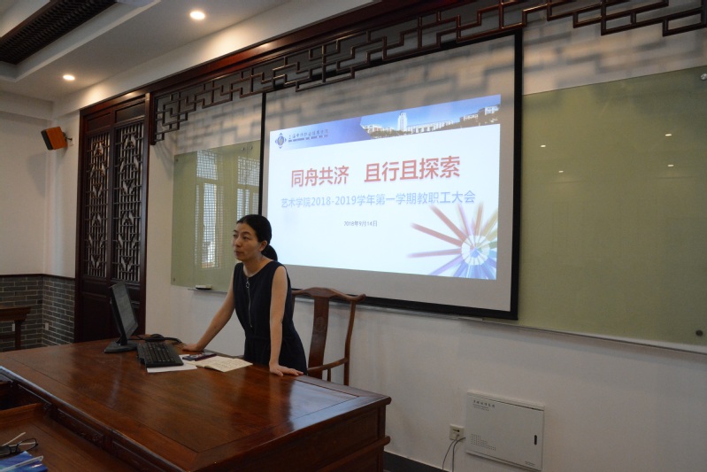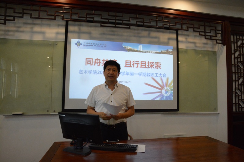9月14日下午13:30,艺术学院2018-2019学年第一学期首次全体教职工大会在5号楼国学堂隆重召开。艺术学院院长程俊杰, 常务副院长侯雨豪,副院长窦蓉蓉,副院长殷正洲,党支部书记兼副院长戴红梅出席会议并发言。