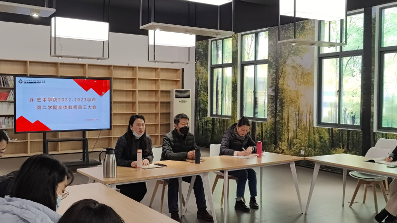 2023年2月17日上午,艺术学院于5号楼301召开全体教职工大会,艺术学院院长孔锦,党总支书记、副院长戴红梅,党总支副书记杨莉以及全体教职工参与会议,会议由戴红梅书记主持。