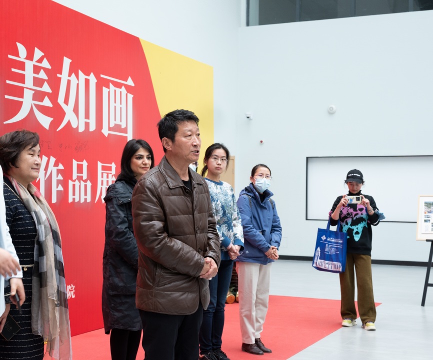 指导老师Parisa Tehranizadeh随后向全体师生解答介绍本次环境艺术作品展的基本情况。本次作品展是艺术学院扎实推进专业内涵建设的重要展示,环境艺术设计专升本班的同学们以“我和我的校园”为设计主题,挑选学校中的任意一块场地,根据位置关系来思考其功能性并加以改造进行场地设计。本次作品展作品凝聚着学生对于作品的展现与自信,涵盖着学生们设计思想以及对校园环境艺术的思考。
