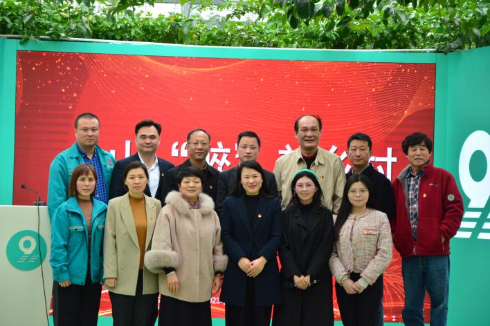 党建共建、校企合作仪式结束后,举行金山“醉”美乡村画展开幕,画展策展人朱希教授介绍到艺术学院美丽乡村志愿者服务队的同学们在党的二十大召开前夕,创作了124个最美金山乡村的艺术作品。这些作品反映了改革开放后金山村貌的变化与美丽,歌颂了习近平总书记提出的建设美丽乡村“青山绿水就是金山银山”的理念。上海九丰农场是全国现代农业园区的大型绿色生态园,位于上海醉美古镇枫泾镇盛新村,离正在建设中的乐高乐园区仅一步之遥,隔岸相望,此次展出的作品陈设在绿色盎然的生态园大棚内,让观光游客真正领略农、旅、文、教一体化发展园区建设的标准模式,探索艺术职业教育助力上海绿色田园先进片区发展的新思路,拓展本科职业教育与振兴乡村的新理念。各位领导老师也共同进行画展开幕的剪彩与合影。