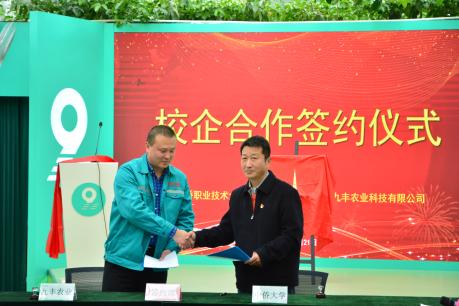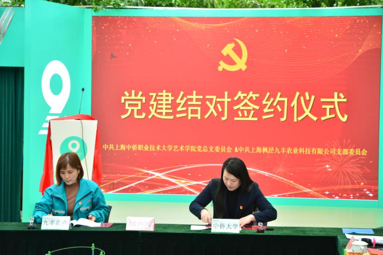 随后,艺术学院戴红梅书记和九丰农业沈亚华书记进行党建结对签约仪式。