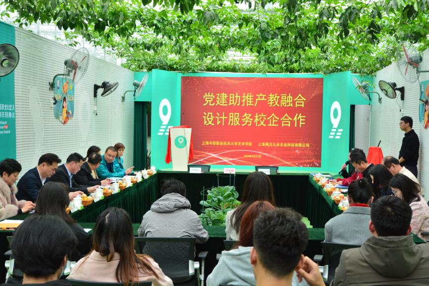 为进一步深化党建共建、校企合作,推进产教融合,2023年3月21日,上海中侨职业技术大学艺术学院与上海枫泾九丰农业科技有限公司举行党建共建、校企合作暨金山“醉”美乡村画展启动仪式。上海市金山区党建服务中心主任谭军锋,上海市金山区枫泾镇副书记胡吉根,副镇长尤利明,组织部长杨卫萍;上海市金山区旅游局前局长柳霞;上海枫泾九丰农业科技有限公司副总经理姚子斌,党支部书记沈亚华,办公室主任赵晓光;上海中侨职业技术大学党委书记、副校长平杰,艺术学院院长孔锦,党总支书记、副院长戴红梅,大师工作室负责人朱希等师生代表共同参与本会议。会议由艺术学院综合管理办公室主任张婷婷老师主持。