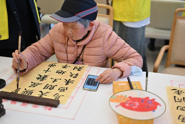 本次志愿服务活动,美丽乡村志愿者服务队来到了惠南镇衡山人寿堂养护院,志愿者们在协助老人们完成绘画书法等作品的活动过程中与老人交流聊天,认真倾听老人心底的故事,在点滴细节上关怀老人,给他们带去温暖。大家用朴实而真诚的行动表达着对老人们的关爱,整个敬老院里一片欢声笑语,暖意融融。