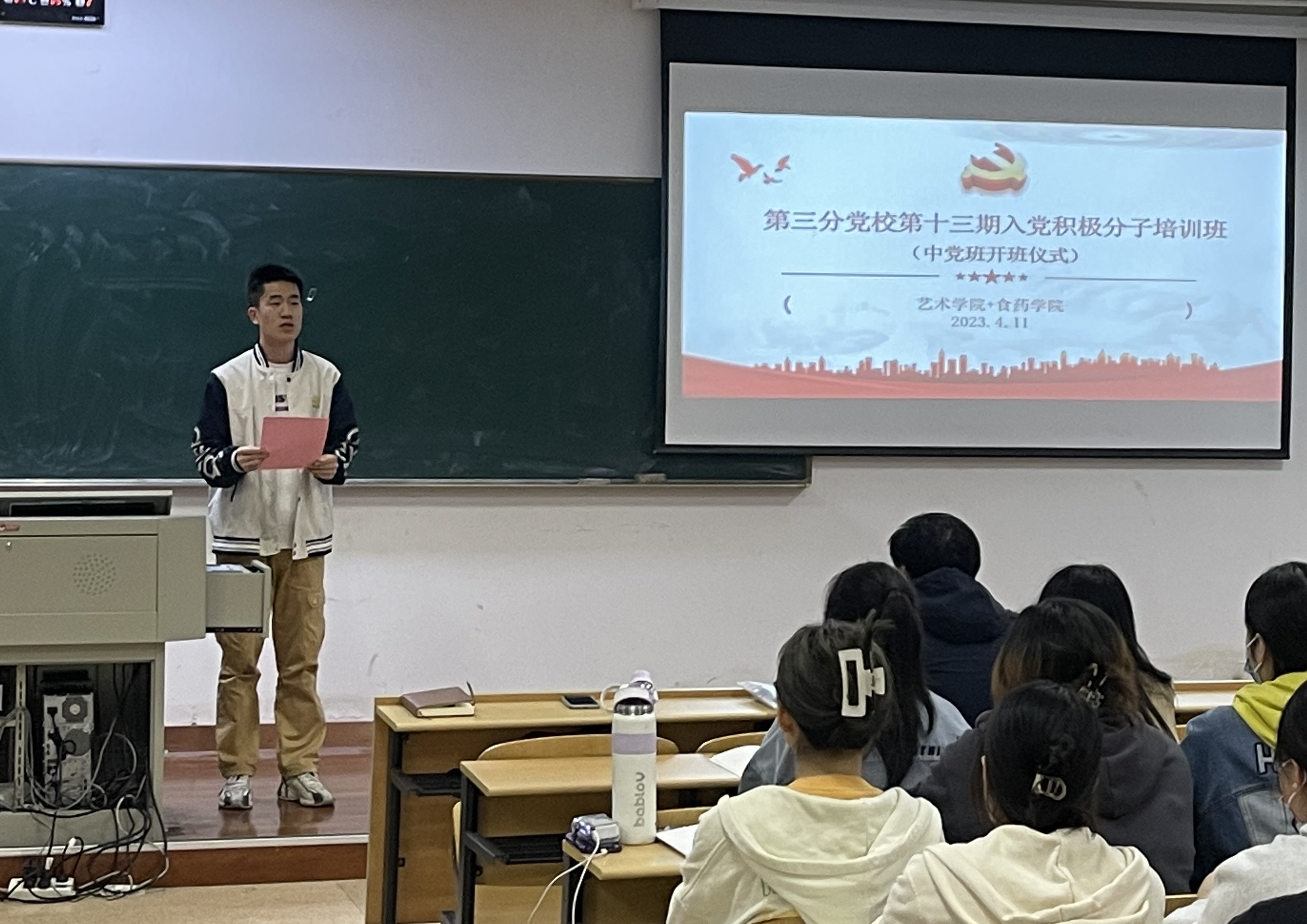 开班仪式上艺术学院党总支副书记杨莉老师向大家能够顺利进入中党班学习表示热烈祝贺,同时也肯定了大家对入党的热情,强调举办这次培训的目的是帮助大家进一步端正入党动机,加强党性修养,坚定理想信念,早日实现入党愿望。也就本次培训的教学计划、教学内容、课堂纪律等向大家做了详细说明。