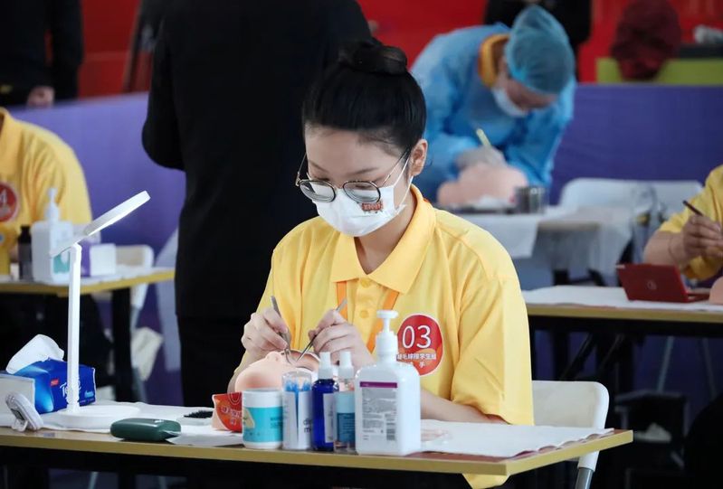 本届竞赛全国共有26个省(直辖市、自治区)的493名选手参加决赛,竞赛内容包括发型设计、美甲设计、美容理疗等多个方面。22级人物形象设计中高贯通班的王超颖同学在比赛中沉着冷静、稳定发挥,展示了自己的专业技能,她在此次比赛中积极备战,沉着应对,表现出良好的技术水准。在比赛前一天,仍旧不愿意浪费一分钟,通宵达旦,仔细复习,加强练习,熟悉赛务手册的每一项要求。经过激烈角逐,艺术学院22级人物形象设计中高贯通班的王超颖同学获得美睫项目(学生组)金奖。