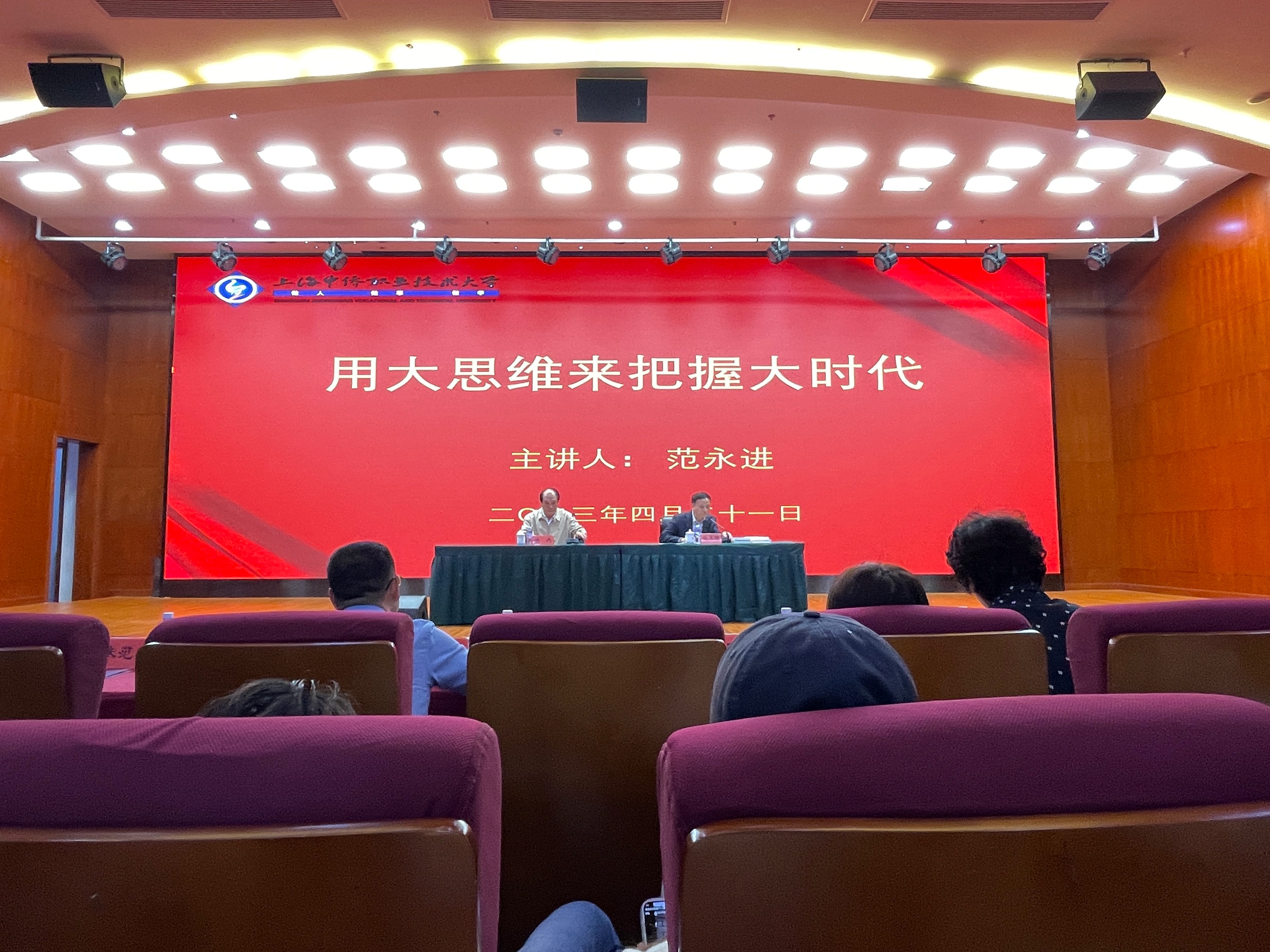 在讲座中,范永进同志从自身成长经历出发,探寻分析大时代的内涵与特征,大跨越、大视角、大维度地回顾人类历史概貌、解读世界风云变幻、剖析中国跌宕历程、洞察全球局势动向等,以呈现大历史脉络,启迪大思维创新,把握大时代格局。范永进同志认为:“纵观国内外,世界局势和中国发展都已走到了转折的临界点,面临这一历史性的时点,我们需要去挖掘历史,去传承发扬大智慧,开创大思维、抓住大契机、把握大时代。”