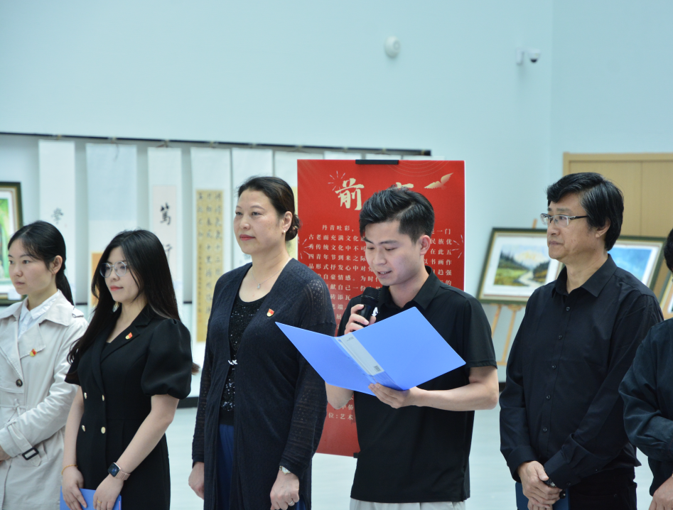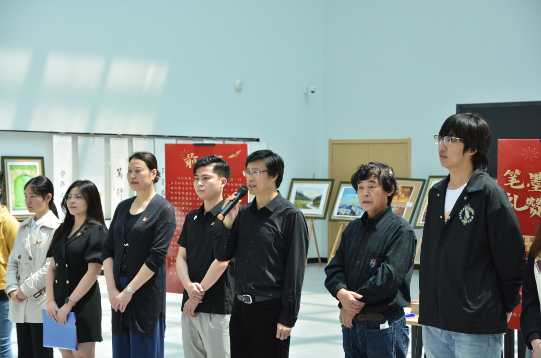 首先,黄杰副书记致开幕辞,他表示此次书画展的举办进一步弘扬传统文化,展示我校文化艺术发展新成果、新面貌,丰富我校大学生精神文化生活,提高我校学生的美术作品质量,促进我校美术爱好者们为新时代高质量发展做出更大贡献。倡导师生们深入生活、扎根人民,努力创作更多反映时代精神与美好生活的精品力作。