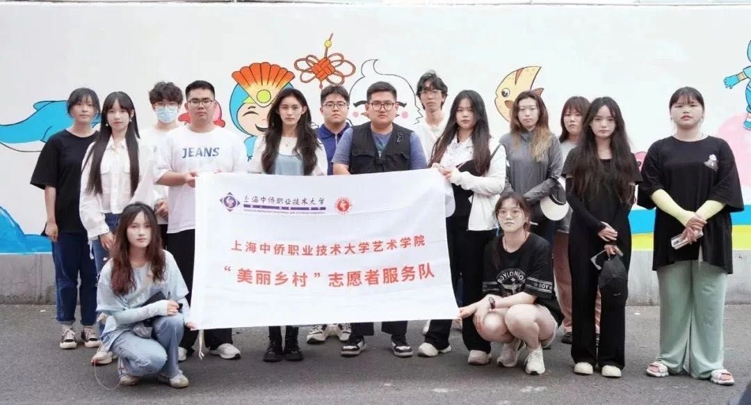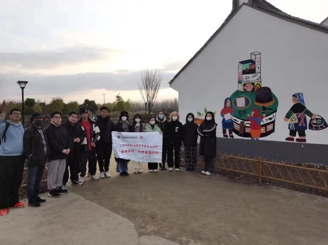 2023年艺术学院美丽乡村志愿者服务队,在校党委和团委的指导和引领下,坚持将“感恩、奉献、互助、责任”作为服务理念,推出了众多具有学院特色的志愿者服务项目,与张堰镇、廊下镇、桑园村、旧港村等进行服务乡村振兴结对共建;包括金山区教师进修学院附属小学壁画志愿服务、美丽乡村志愿者服务墙绘活动、廊下镇友好村水井绘制、敬老院志愿者、搬寝室志愿者等。