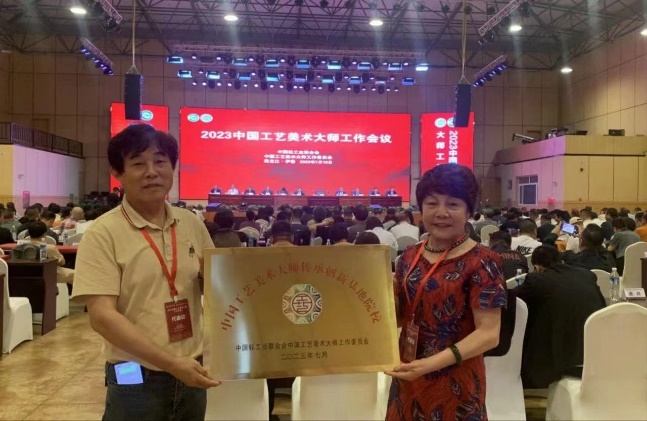 为深入贯彻落实《中国传统工艺振兴计划》,发挥中国工艺美术大师引领作用,加强工艺美术高校人才培养,推动中国工艺美术及非遗传承的创新机制,中国轻工业联合会持续开展中国工艺美术大师传承创新基地院校创建工作,组织创立了百名大师进高校的活动。2023年7月17至19日,中国轻工业联合会在哈尔滨宜春市筹备召开了“中国工艺美术大师工作会议”,在会上宣读了全国四十所院校为第四批“中国工艺美术大师传承创新基地院校”并予以授牌。上海市有三所高校入选,分别为同济大学,上海视觉艺术学院,上海中侨职业技术大学。这份荣誉来之不易,也是一份沉甸甸的责任与担当,更是满满的对中侨艺术学院多年来在这一领域实践的认可与肯定。从此开启了工艺美术大师领航的新篇章!、