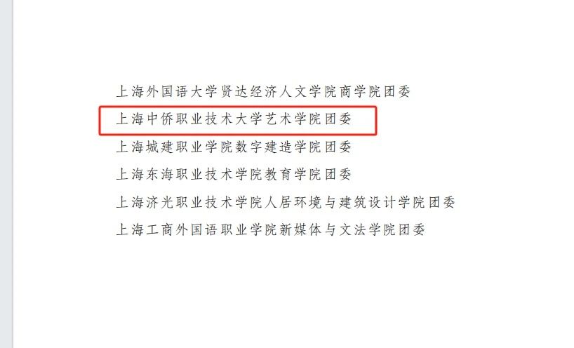 上海中侨职业技术大学艺术学院团委,工作突出,连续三年被评选为校优秀、特色团支部,拥有上海市百支品牌志愿者服务队—“美丽乡村”志愿者服务队。服务队的“助力美丽乡村、艺术绘美金山”项目在第一届“知行杯—青春社区”上海高校共青团往社区走社会实践大赛中荣获十大示范项目,“美丽乡村的振兴者”项目荣获2019年上海高校学雷锋志愿服务先进典型。下属团支部也表现优异,自2019年至2022年,先后有6个团支部获得校优秀团支部等荣誉称号。