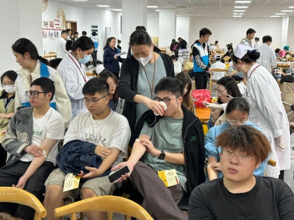 在本次献血活动中,有许多23级新生参与其中。他们中的很多人是第一次献血,面对抽血的针管有些许的紧张与不安,但是他们用笑语嫣然冲淡了内心的恐惧。一双双有力的手伸向医护人员,流出饱含青春激情的热血,而这些热血有一天将带给他人以生的希望。