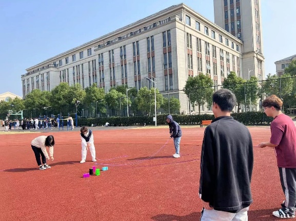 扔飞镖需要全程保持聚精会神的状态,一站二看三掷,顷刻间便得到最终分数,刚开始失利的同学并不气馁,全力完成余下几掷,每位同学脸上都洋溢出喜悦的微笑。