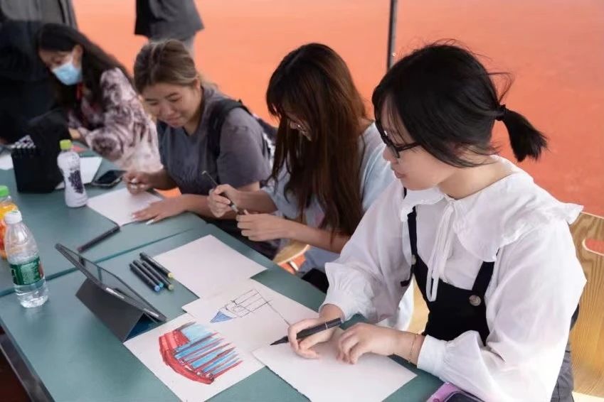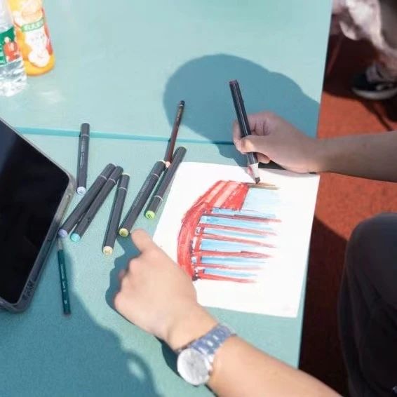 通过图形的描摹,色彩的填充,笔尖的触动,同学们画下自己心中的“中侨”校园,色彩与情感的碰撞中,产生绝美的效果