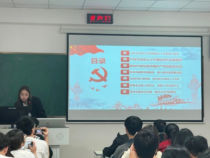 刘嘉欣老师以严谨的教学方式,对党的二十大报告精神要点进行了细致详细的深刻解读。