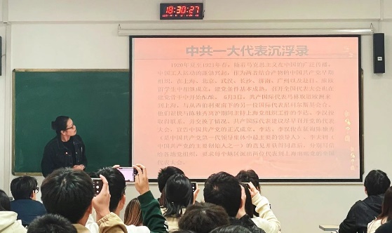 杨老师为大家详细介绍了中共一大的十三位代表,他们分别是上海的李汉俊、李达;北京的张国焘、刘仁静;长沙的毛泽东、何叔衡;武汉的董必武、陈潭秋;济南的王尽美、邓恩铭;广州的陈公博;留日学生周佛海以及陈独秀委派的包惠僧。