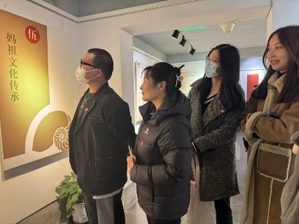 在讲解员的带领下,艺术学院教师党支部首先来到金山嘴的妈祖文化馆参观。在文化馆中详实的资料展示了妈祖文化发生发展的变化过程,让大家对妈祖文化的起源以及与海洋渔业的关系有了更为深入的了解。党员们认真听取讲解员的介绍,交流互动热烈。大家共同探讨如何更好地传承和发展当地的传统文化和特色产业,为乡村振兴贡献力量。