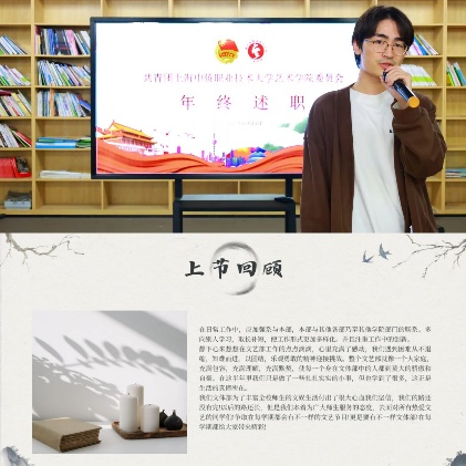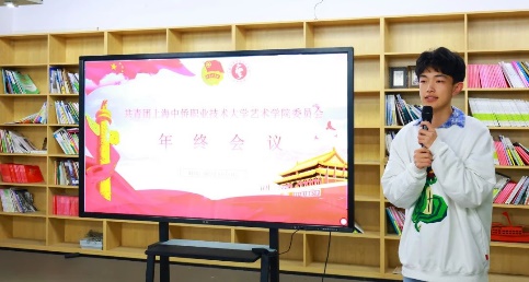 本次会议包括两项议程,一为2023-2024学年艺术学院团委、学生会第二次全体大会,二为共青团上海中侨职业技术大学艺术学院委员会年终述职大会。