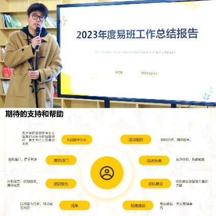 为增强艺术学院团委、学生会整体的联系与凝聚力,协调各部门之间的工作安排,调动各部门人员的积极性。艺术学院团委、学生会于2023年12月14日晚6时30在艺术学院301教室举行艺术学院团委、学生会年终会议。