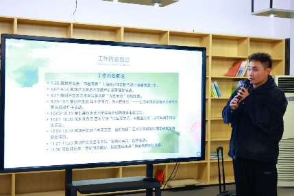 随后,主席团成员张毅楠同学对各部门述职进行总结。首先各部门在2023年度工作开展较为顺利,各部门各司其职,部长起到了领头模范作用,期待新学期各部门能够继续保持。其次在部员积极性方面希望能够有所提升,各部员积极踊跃为团委、学生会的建设添砖加瓦。