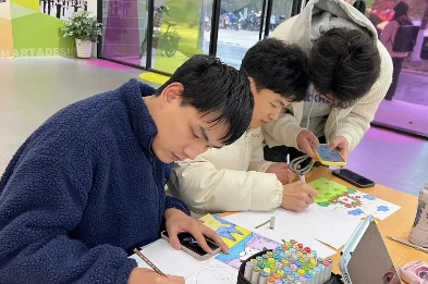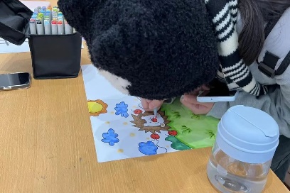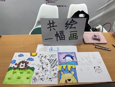 通过这次活动,同学们不仅可以大胆的尝试新的一种风格,同时这也是一种尝试:即发挥想象的同时又为下一位绘画者留有作画空间,同样体现出合作的重要性。