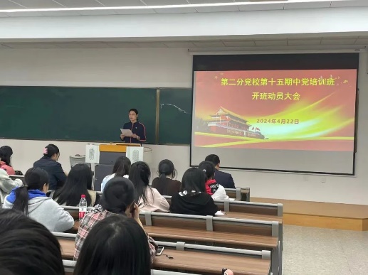 2024年4月22日晚上6点,第二分党校第十五期中党开班仪式在10号楼305举行。
