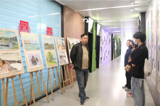 艺术学院设有多个实训室以满足不同种类课程的需要,艺术学院党总支副书记杨莉老师向学生与家长详细介绍了每个实训室的功用,并向其讲解艺术学院实验室的特色——金山农民画。