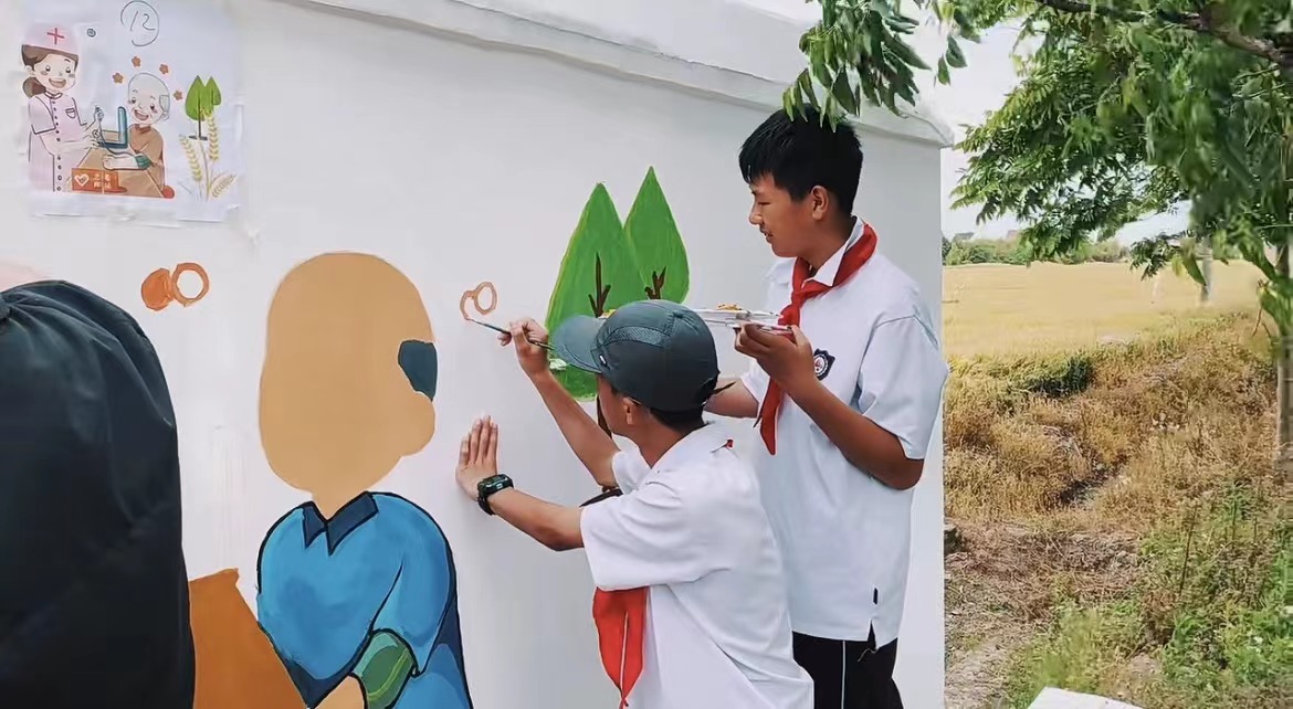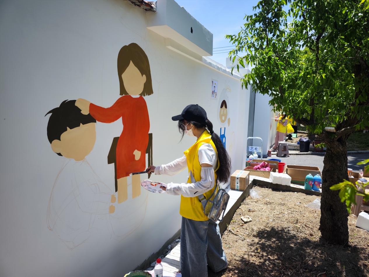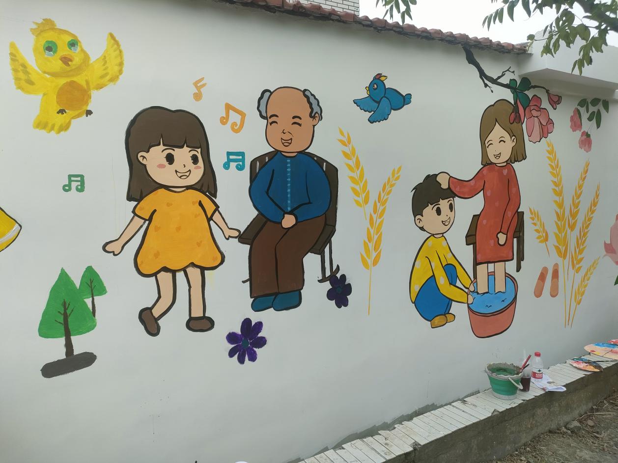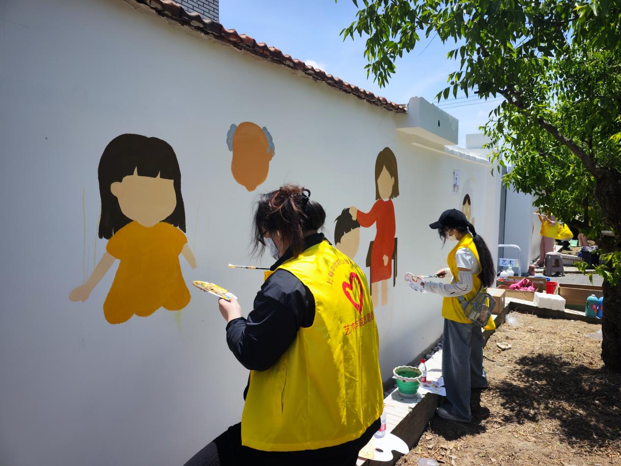 此次以敬老爱老为主题的墙绘活动,不仅给金山区金门村增添了一抹亮丽的风景,也通过绘画的形式,传达敬老、爱老的理念,让更多人关注老年人的生活和需求。在准备阶段,艺术学院团队成员就精心设计了墙绘图案,力求展现出老年人的风采和精神风貌,也在结束阶段,为宣传敬老爱老精神画上了圆满的句号。