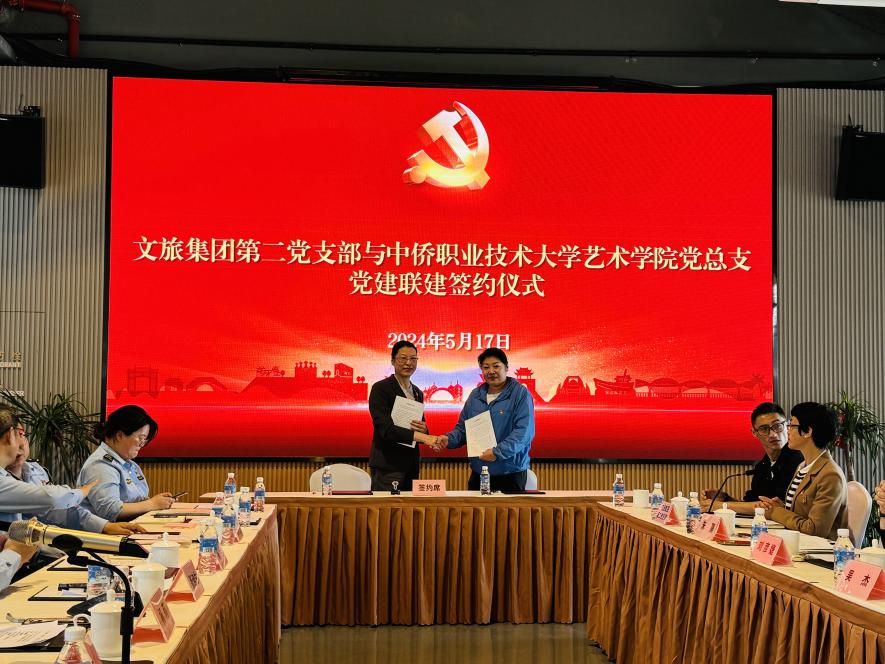 随后,文旅集团第二党支部与艺术学院党总支举行党建联建签约仪式。文旅集团第二党支部书记朱熹和艺术学院党总支副书记杨莉共同签署了本次党建联建相关文件,标志着各方在党建工作上的新合作,通过组织联建、党员联动、工作联助、资源共享等方式,共同推动党建业务互促共融,服务群众同频共振。