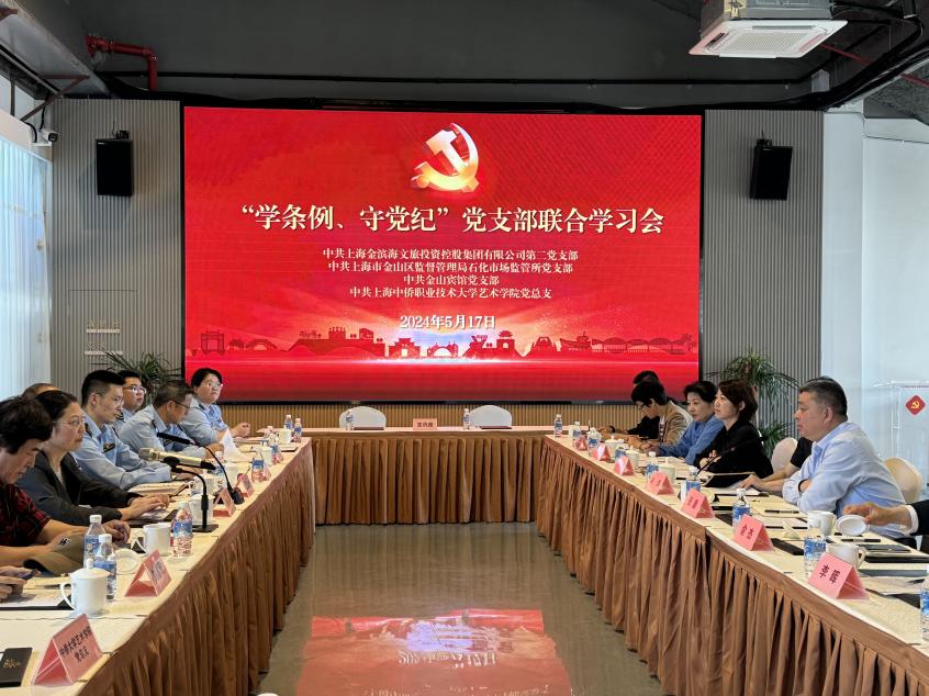 为深入贯彻习近平总书记关于党纪学习教育的重要讲话和重要指示精神,认真落实校党委《关于开展党纪学习教育的实施方案》工作要求,扎实推进党纪学习教育活动,2024年5月17日下午,中共上海金滨海文旅投资控股集团有限公司第二党支部、中共上海市金山区监督管理石化市场监管所党支部、中共金山宾馆党支部以及中共上海中侨职业技术大学艺术学院党总支在上海湾区城市沙滩党群服务站共同开展联合学习会。艺术学院党总支副书记杨莉,中侨大学金山农民画大师工作室负责人朱希,团委书记刘嘉欣等党员老师参与本次会议。本次会议由文旅集团第二党支部书记朱熹主持。