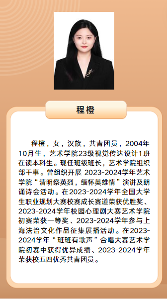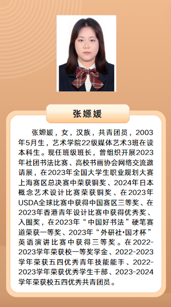 经过第五次学生代表大会投票选举,艺术学院22媒艺本科3班张嫄媛、23视觉本科1班程橙担任第五届学生常任代表委员会委员,任期一年。