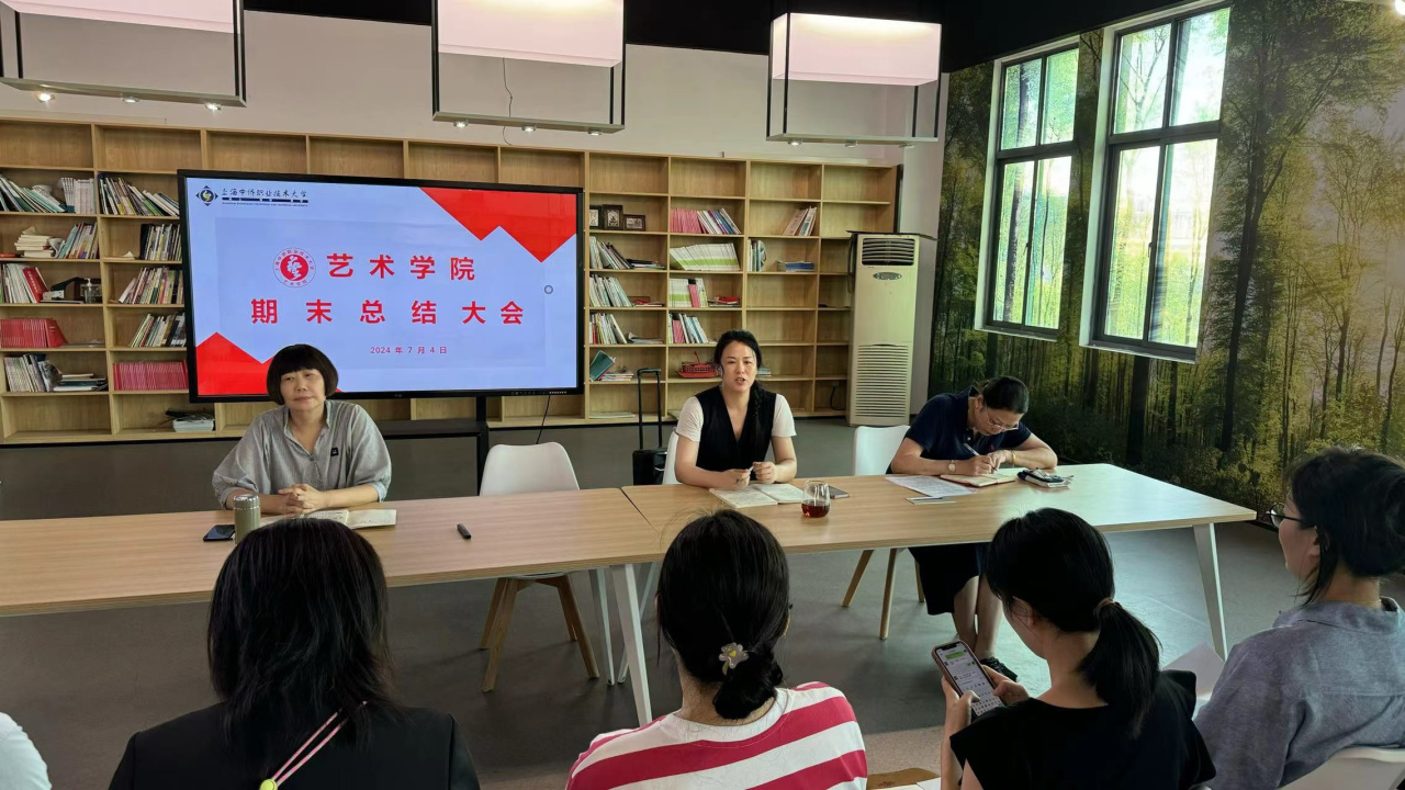 2024年7月4日,艺术学院在一片热烈的氛围中成功召开了2023-2024学年第二学期的年度工作总结大会。本次大会全面回顾了学院在党建、学生工作、教学和学院发展等方面的成果,并为新学期的工作重点与难点制定了计划。艺术学院党总支书记、副院长戴红梅,教学副院长毛娜,党总支副书记杨莉等全体教职工出席本次大会。会议由戴红梅书记主持。